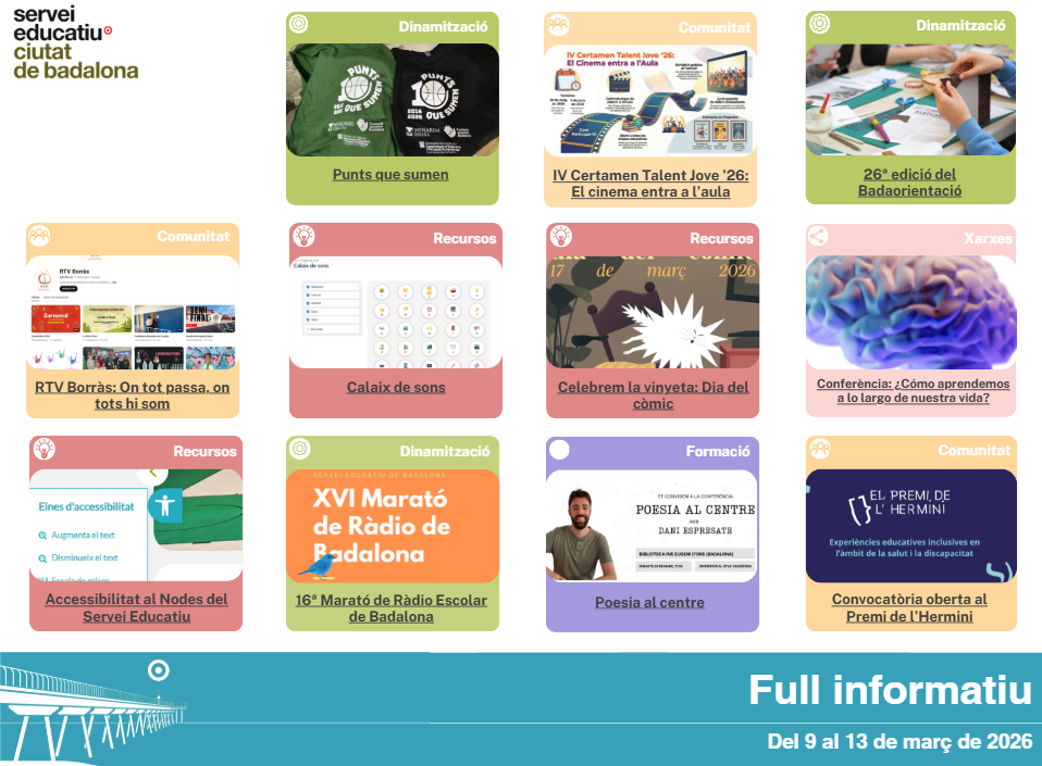 Aquestes són les notícies publicades al web del Servei Educatiu de Badalona d’aquesta setmana. Full informatiu Badalona del 9 al 13 de […]