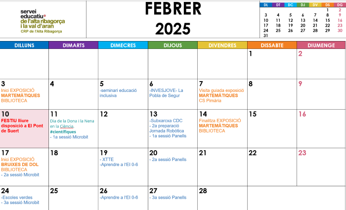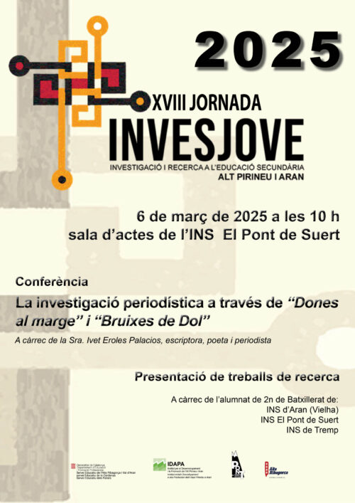 El 6 de març de 2025, es durà a terme la XVIII Jornada Invesjove. Aquesta jornada s’adreça a l’alumnat de primer de batxillerat dels centres de l’Alt Pirineu i Aran, organitzat pels Serveis Educatius de l’Alta Ribagorça-Val d’Aran, de la Cerdanya i dels Pallars.