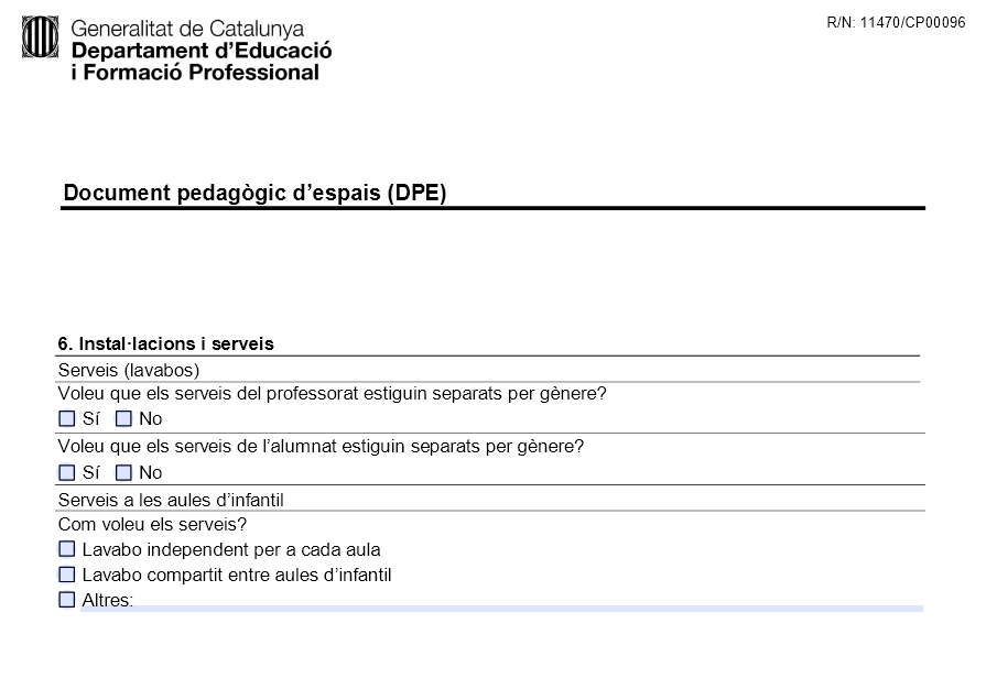 • Per als serveis d’infantil, i segons com funcionin les aules d’aquest cicle, cal saber si es vol un servei per aula o es podran compartir, o qualsevol altra opció que es pugui plantejar pedagògicament.