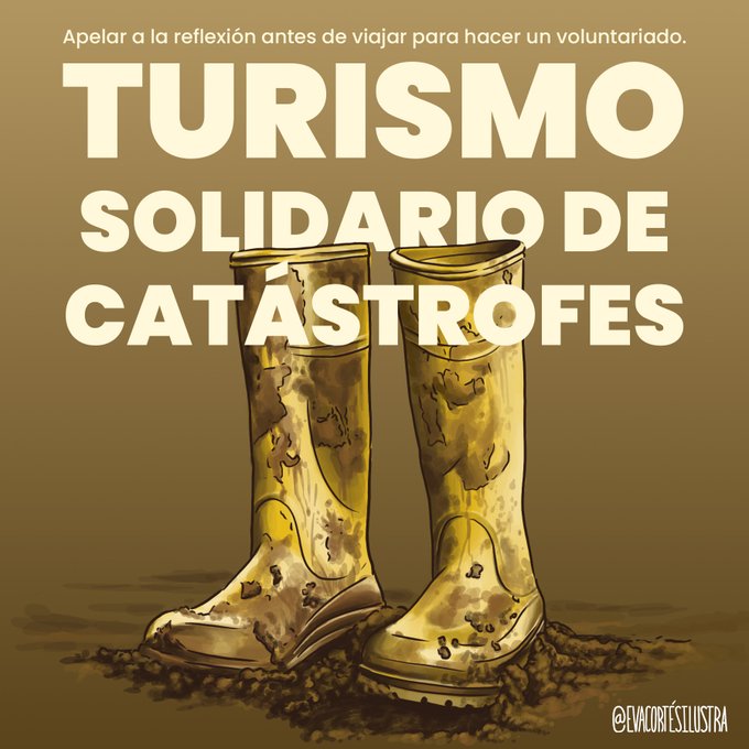 “Desde que la ayuda externa llegó a València, he visto conductas sociales que me han empezado a doler. He rumiado mucho esta reflexión y confieso que me daba miedo expresarla, pero allá voy: Por favor, pensad antes de ayudar, EVITEMOS EL TURISMO DE CATÁSTROFES.” Eva Cortès