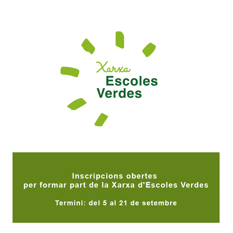 Inscripcions obertes per formar part de la Xarxa d’Escoles Verdes El vostre centre educatiu vol formar part de la Xarxa? Les inscripcions per participar en les formacions inicials estaran obertes del 5 al 21 de setembre. Per a qualsevol consulta us podeu adreçar a escolesverdes@gencat.cat →Enllaç a la inscripció Actualment, d’acord amb la LEC i el