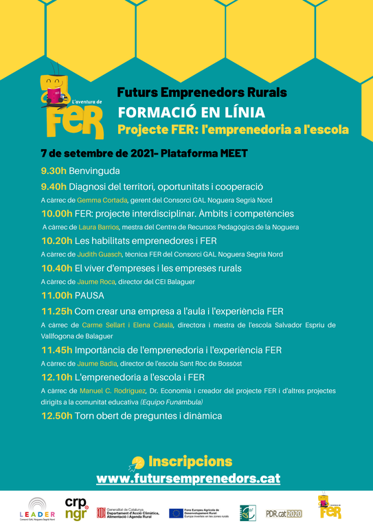 El Centre de Recursos Pedagògics de la Noguera, el Consorci GAL Noguera Segrià Nord, mestres experts en FER i professionals del món empresarial seran els ponents de la jornada. En aquesta comptarem amb el fundador i creador del projecte FER en els seus inicis.