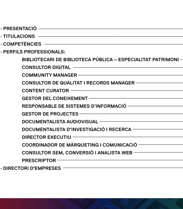 Formació dels bibliotecaris/bibliotecàries: Enllaç a la pàgina web del Col·legi Oficial de Bibliotecaris-Documentalistes de Catalunya