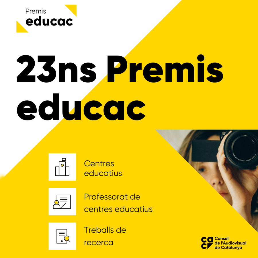 Premis eduCAC: reconeixement a la tasca docent en l’àmbit de l’educació mediàtica i informacional El Consell de l’Audiovisual de Catalunya convoca anualment, des del curs 2003/2004, els Premis eduCAC amb l’objectiu de fomentar l’educació en comunicació i reconèixer la tasca duta a terme pels docents a les aules en aquest àmbit. Terminis de presentació: Per […]