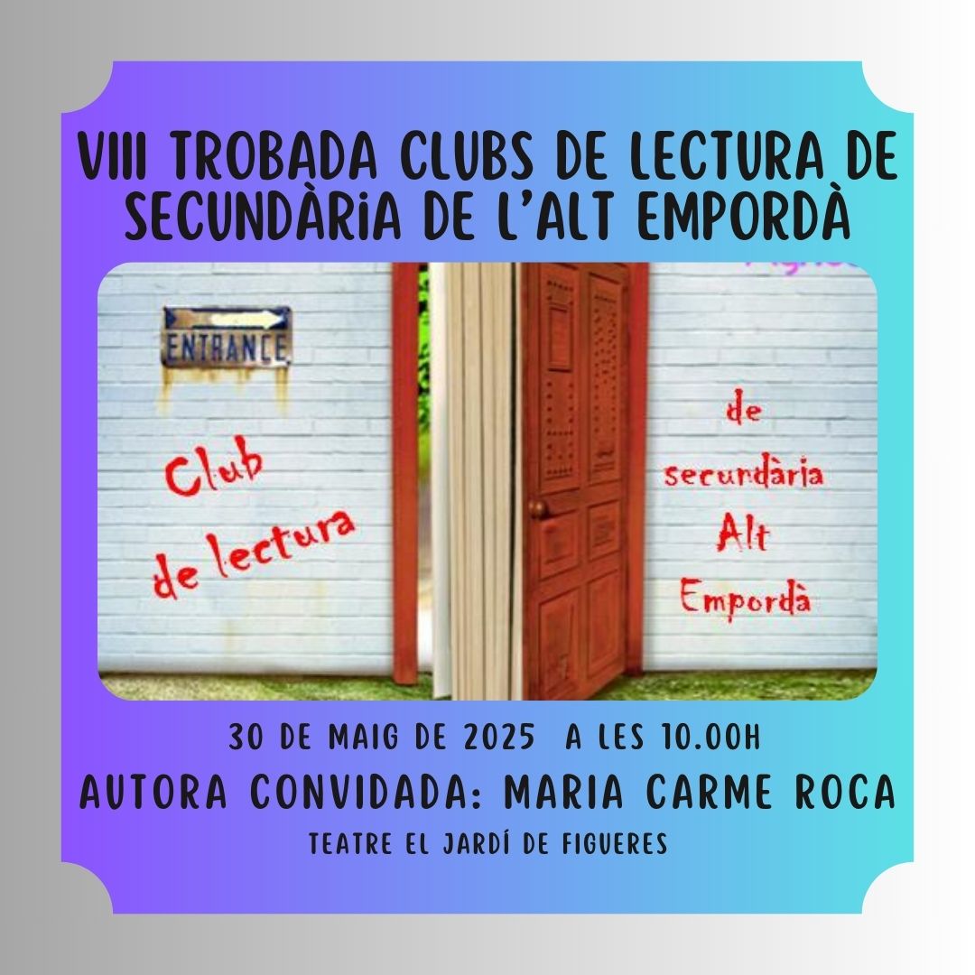 Divendres 30 de maig de 2025 a les 10 h tindrà lloc la VIII Trobada de cloenda del Seminari de Clubs de Lectura de Secundària de l’Alt Empordà.… Llegeix més»