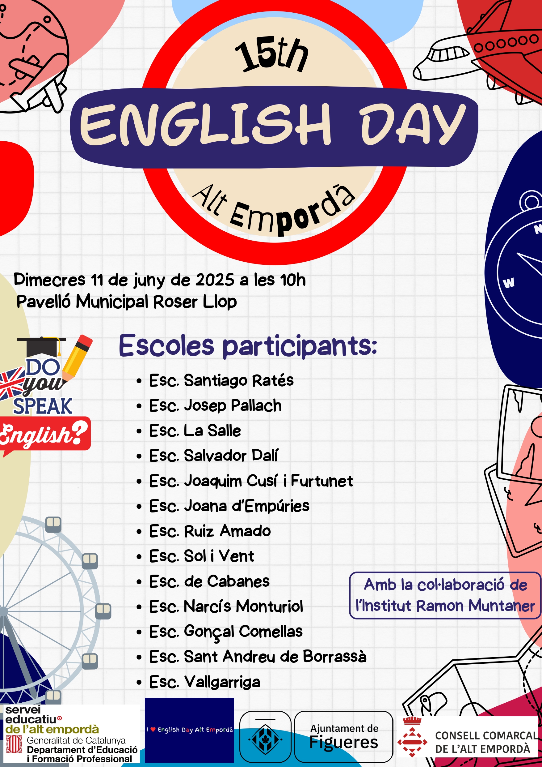 Dimarts, 11 de juny es realitzarà una nova edició de l’English Day. Hi participaran uns 350 alumnes de sisè de la comarca, més una quarantena d’alumnes de 4t d’ESO de l’institut Ramon Muntaner de Figueres.… Llegeix més»