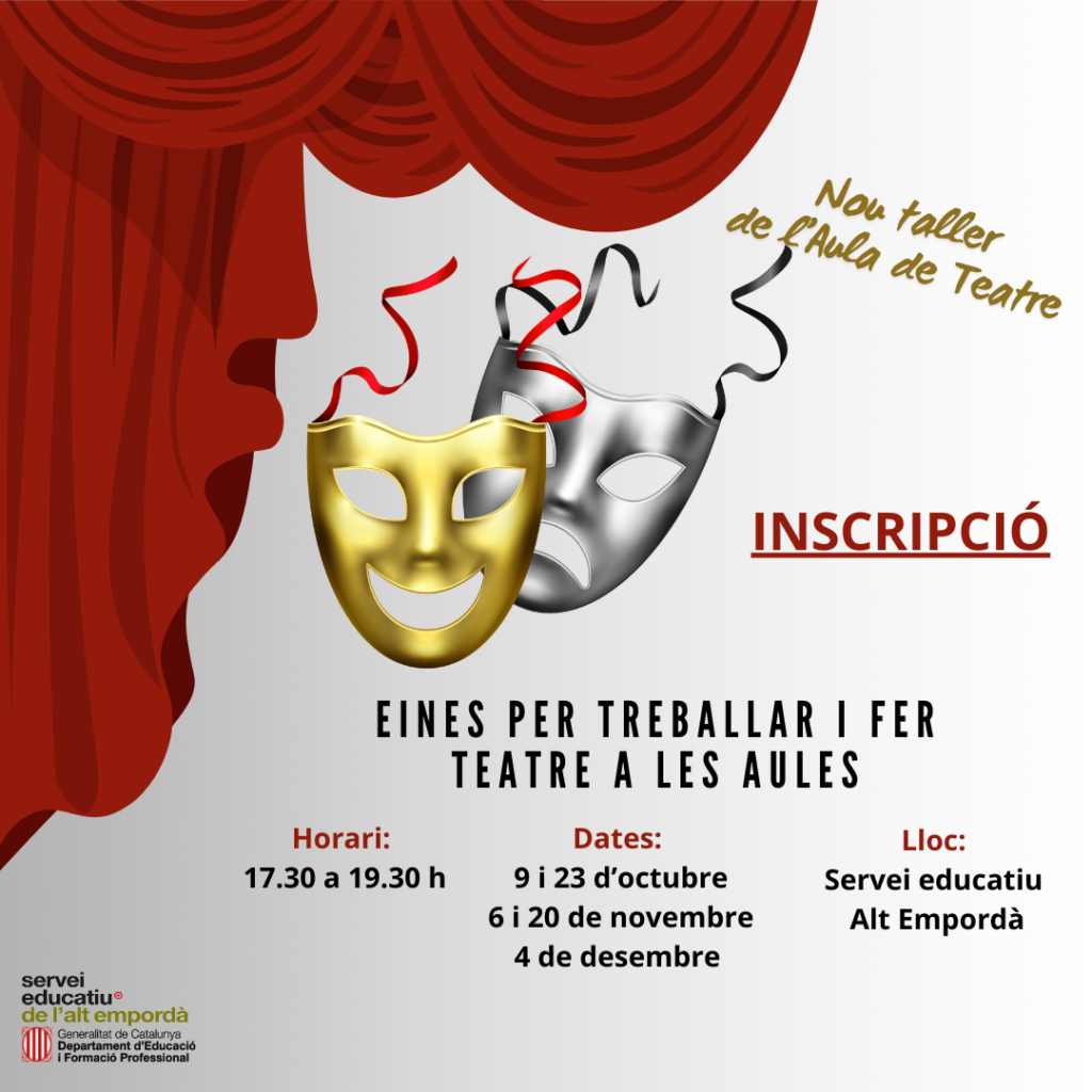 Taller de 5 sessions adreçat a docents de primària i secundària per conèixer les diferents eines per treballar el teatre a les aules. Formació a càrrec de l’Aula de teatre de Figueres.