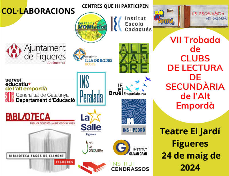 El pròxim divendres 24 de maig de 2024 a les 10 h tindrà lloc la VII Trobada de cloenda del Seminari de Clubs de Lectura de Secundària de l’Alt Empordà. Les professores dinamitzadores d’aquest seminari, juntament amb el Servei Educatiu de l’Alt Empordà, han organitzat una trobada amb l’autora Laia Aguilar al Teatre El Jardí de Figueres. Durant tot el curs l’alumnat dels centres participants ha llegit alguna obra d’aquesta autora entre altres lectures. Han fet trobades periòdiques per comentar-les i diverses activitats de dinamització.