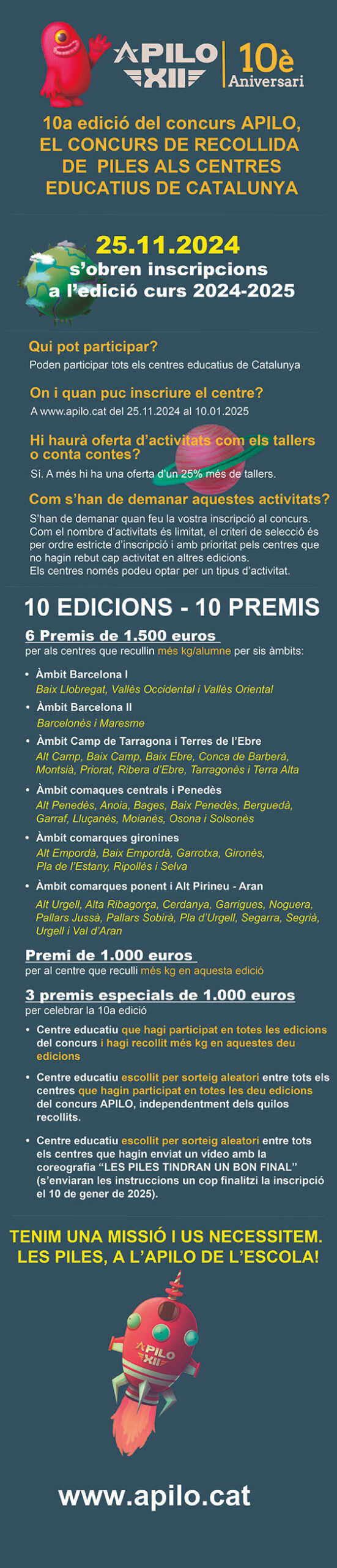El concurs de recollida de piles als centres educatius de Catalunya obre les inscripcions a l’edició d’aquest curs del 25 de novembre al 10 de gener.