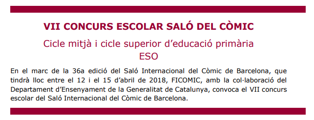 Un any més es convoca el Concurs Escolar de Còmic, en el marc del Saló internacional del Còmic. Aquest any el tema és l’esport.