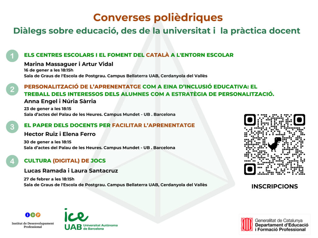 🎯Trobareu més informació i els enllaços d’inscripció a:  https://www.ub.edu/idp-educacio/converses-poliedriques/