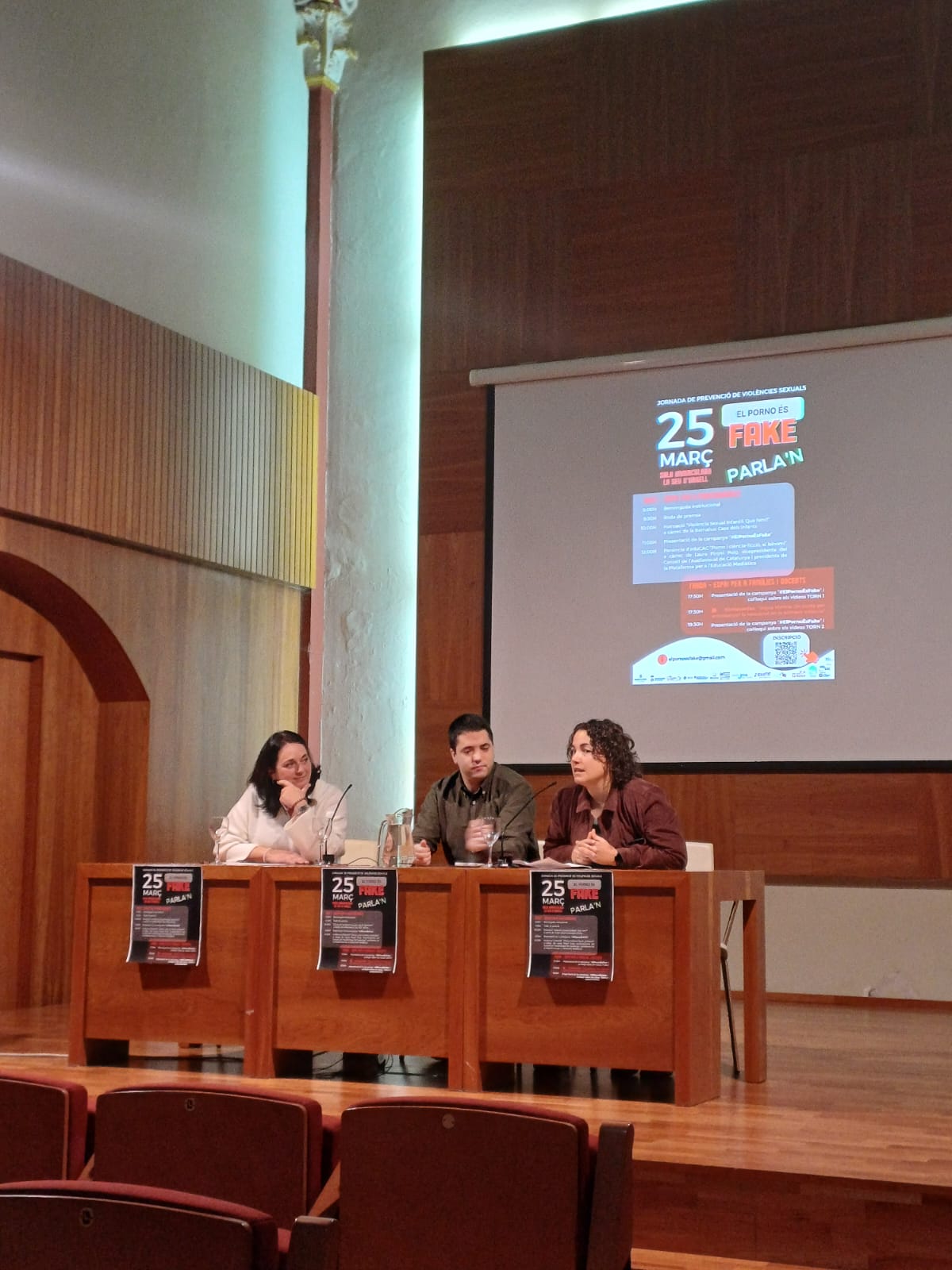 A continuació, els creadors de la campanya “El porno és Fake” —l’Escola de Teatre, Red Nose Productions i el SAI del Consell Comarcal— han presentat els vídeos realitzats en el marc d’aquesta iniciativa per desmitificar la pornografia i oferir una mirada crítica sobre el seu impacte en la societat.