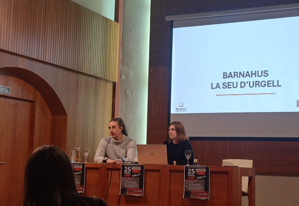 La primera conferència, titulada “Violència sexual infantil. Què fem?”, ha estat impartida per professionals de Barnahus de la Seu d’Urgell. David Escofet i Mònica Cruz han explicat la tasca que duen a terme per abordar casos de violència sexual infantil i han escenificat, a través d’un roleplay, com s’ha d’actuar davant d’una primera revelació d’abús.