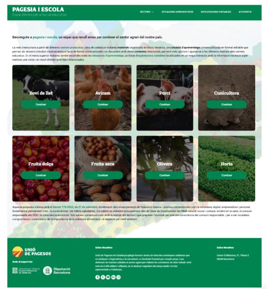 En el menú superior trobareu també recollides totes les situacions d’aprenentatge, un llistat d’explotacions visitables localitzades en un mapa interactiu amb la informació necessària per fer una visita i un recull d’altres activitats relacionades.