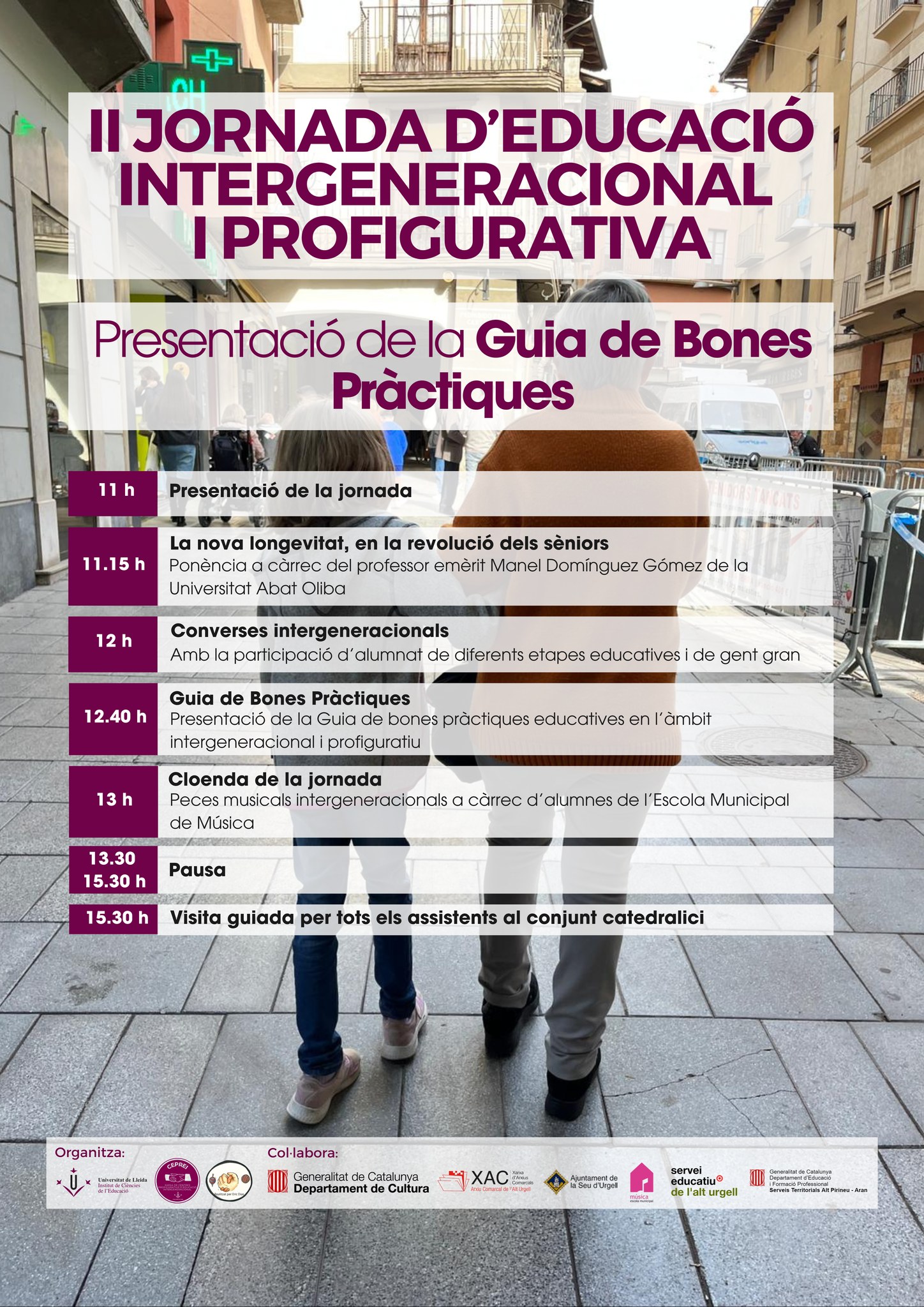 Aquest dijous 7 de maig, tindrà lloc a la Seu d’Urgell la segona edició de la Jornada Intergeneracional i Profigurativa, un espai de trobada per fomentar el diàleg entre generacions i compartir experiències educatives transformadores. Durant la jornada, s’hi celebraran converses intergeneracionals i es presentarà una guia de bones pràctiques educatives en l’àmbit intergeneracional i profiguratiu.