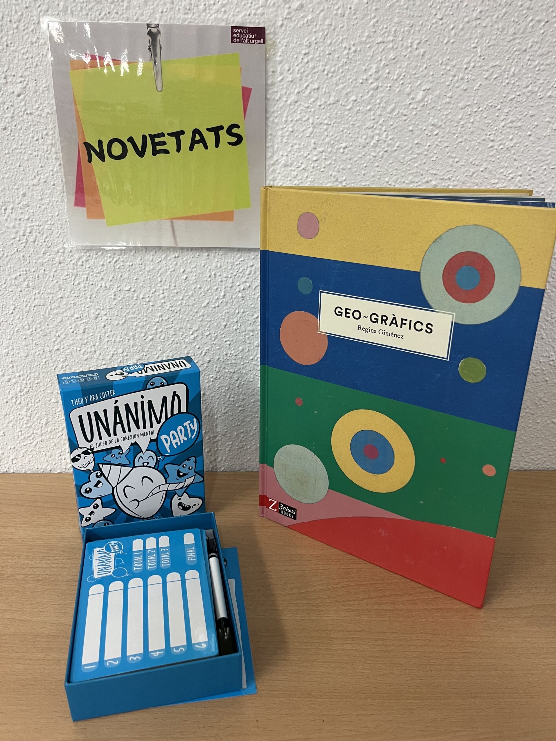 Tenim novetats pel que fa al material de préstec: el joc Unánimo i el llibre GEO-GRÀFICS.
