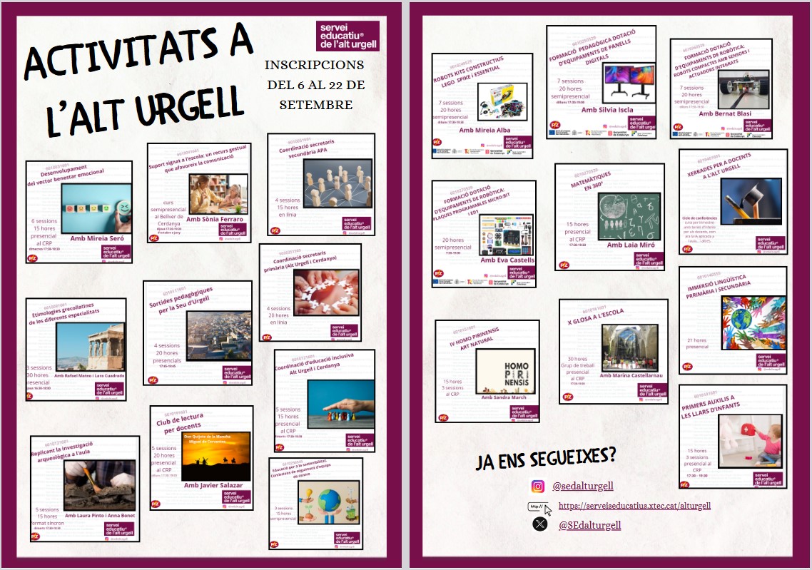 Ja teniu publicades les activitats del Pla de Formació de zona per a aquest curs. Inscripció del 6 al 22 de setembre