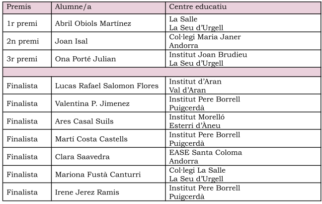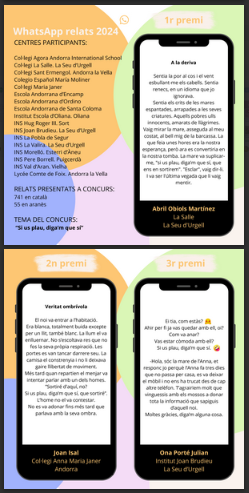Les institucions i entitats organitzadores del VIII Concurs WhatsApp Relats per a alumnes de 4t d’ESO i nivells equivalents de l’Alt Pirineu, Aran i Andorra, fan públic el veredicte del jurat del certamen, amb els premis corresponents.