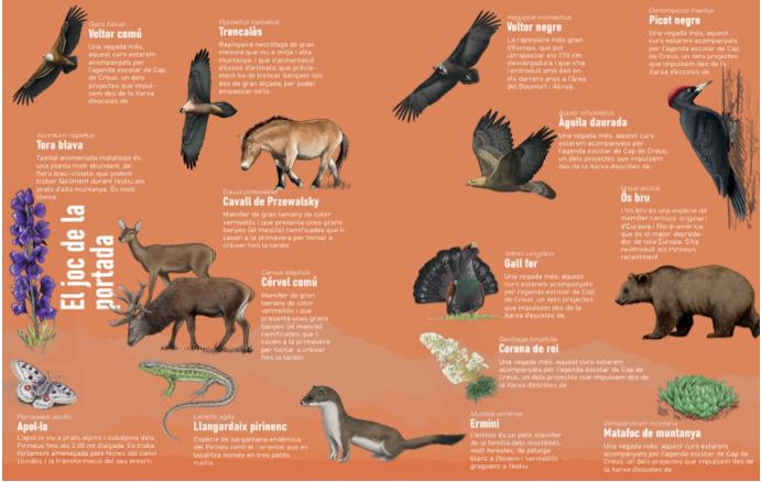 D’aquesta manera, cada setmana els infants, famílies i docents podran llegir una curiositat del medi natural i treballar sobre algun dels reptes ambientals que proposa l’agenda. També inclou jocs, consells per anar a la natura i una guia identificativa d’espècies, entre altres elements.