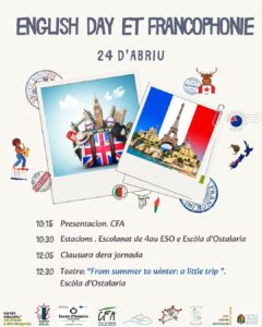 Eth diuendres 24 d’abriu se celebrarà er English Day e era Journée dera Francophonie en Palai d’Espòrts de Vielha. Ena jornada participarà tot er alumnat de 6au de primària dera Val d’Aran. Es dinamizadors des activitats son er alumnat de 4au dera ESO der INS d’Aran e dera escòla d’Ostalaria de Les. Era jornada serà presentada per alumnat  deth CFA.