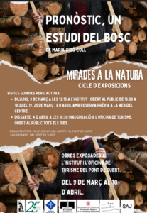 L’INS Pont de Suert vos convide ara exposicion qu’a organizat en collaboracion damb er Ajuntament de Pont de Suert, “Pronòstic, un estudi del bosc”, dera artista Maria Giró Coll. Era mòstra es poirà visitar deth 9 de març ath 10 d’abriu en Institut e ena Oficina de Turisme deth Pont de Suert.