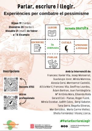 Us fem arribar la informació de la tercera Jornada “Parlar, escriure i llegir. Experiències per combatre el pessimisme”, que tindrà lloc