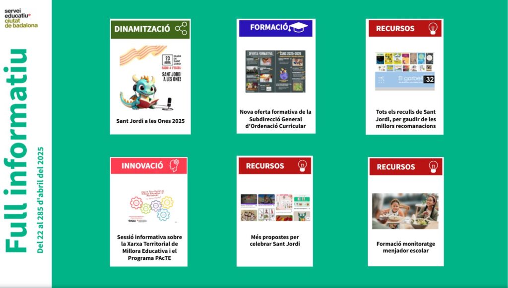 Aquestes són les notícies publicades al web del Servei Educatiu de Badalona d’aquesta setmana.
