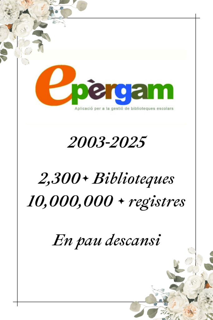 Enguany dediquem la ofrena al programari de gestió de biblioteques ePèrgam (2003-2025), que ens deixa per donar pas a la nova eina Polaris/Vega, que arribarà als centres catalans durant aquest curs 25/26. Gràcies per tots els anys de servei.