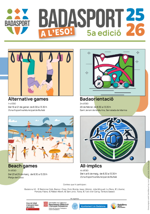 La 5a edició del Badasport a l’ESO, prevista per al curs 2025-2026, comptarà amb quatre activitats: Jocs Alternatius, Badaorientació, Beach Games i All Implics.