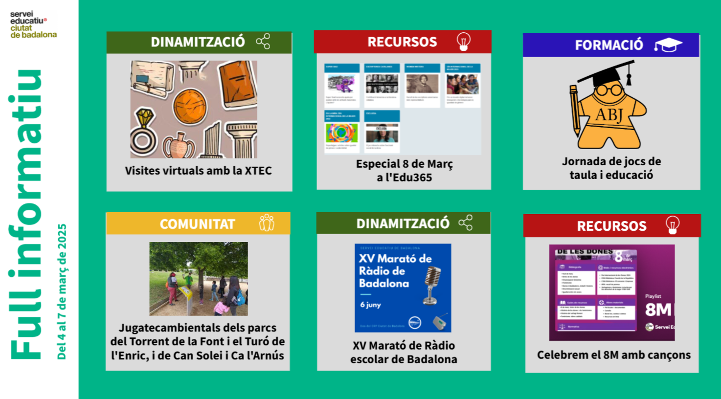 Aquestes són les notícies publicades al web del Servei Educatiu de Badalona d’aquesta setmana.