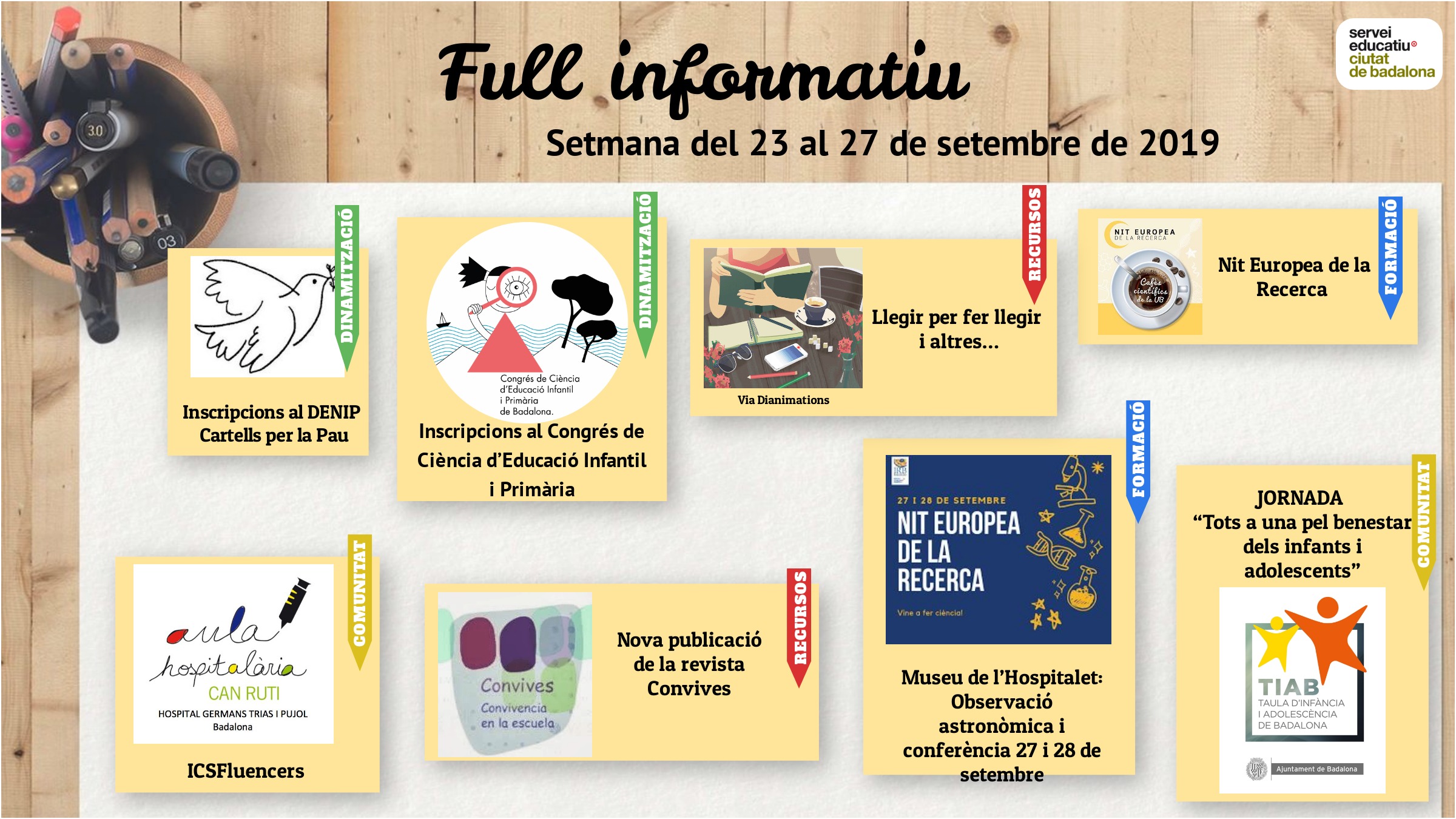 Aquestes són les notícies publicades al web del Servei Educatiu de Badalona d’aquesta setmana. Clica la imatge per poder accedir a la informació de les diferents notícies.