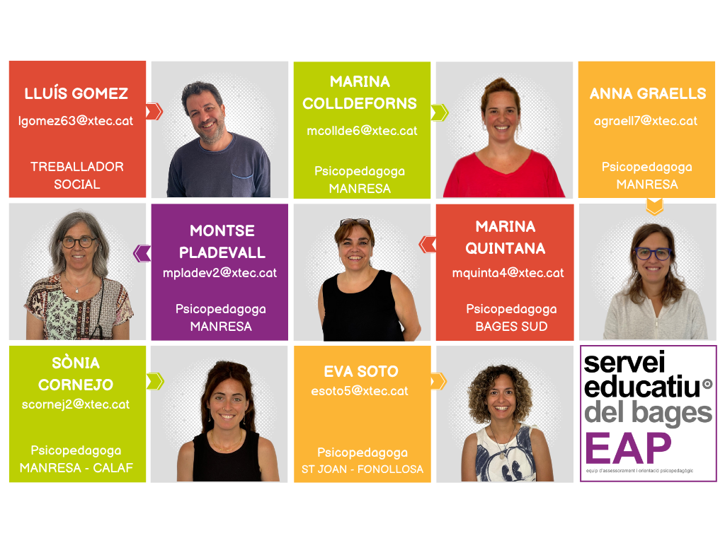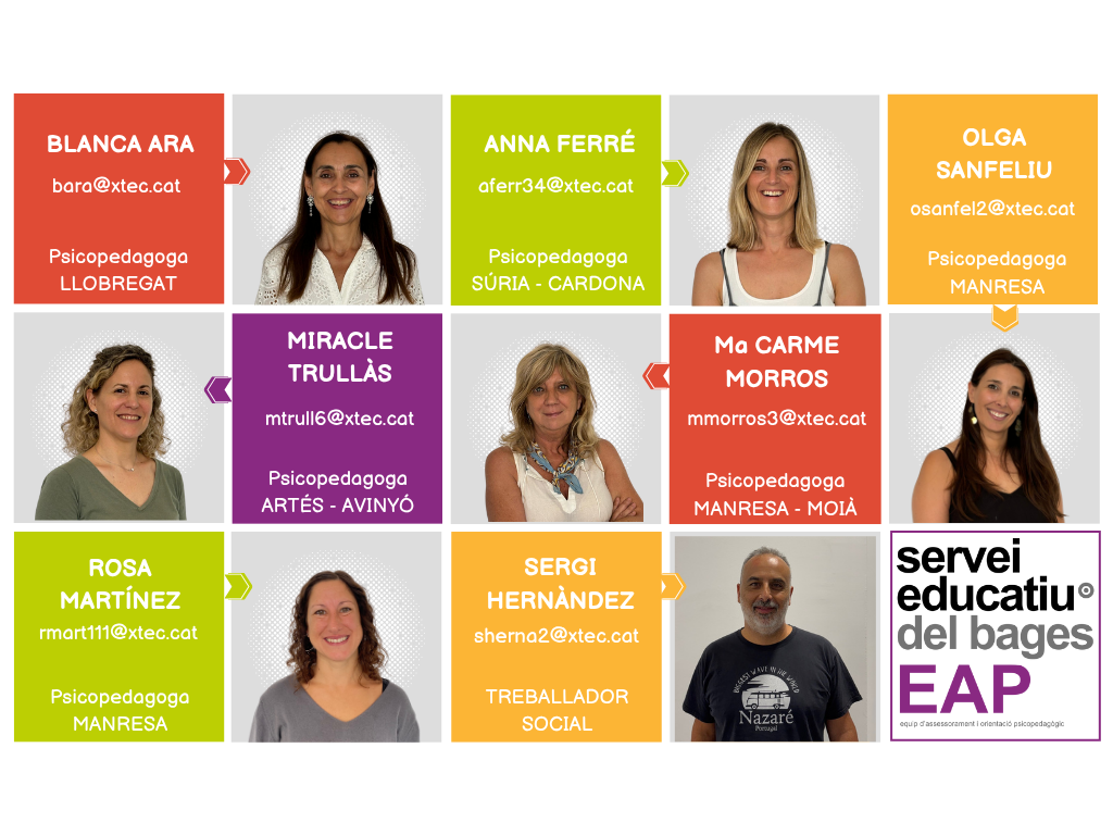Els equips d’assessorament i orientació psicopedagògica donem suport al professorat i als centres educatius en la resposta a la diversitat de l’alumnat i en relació als alumnes que presenten necessitats educatives especials, així com a les seves famílies. Estan formats per professionals de l’especialitat de psicologia i pedagogia, treballadors/es socials i fisioterapeutes.