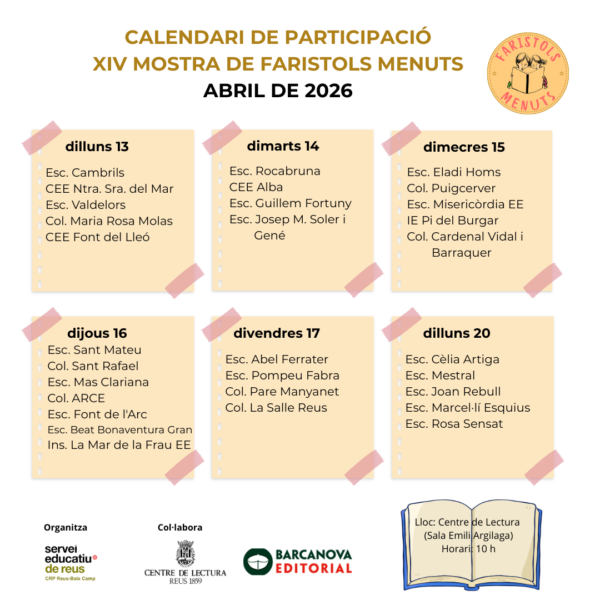 El calendari de participació dels centres a la XIV Mostra de Faristols Menuts es publicarà pròximament.