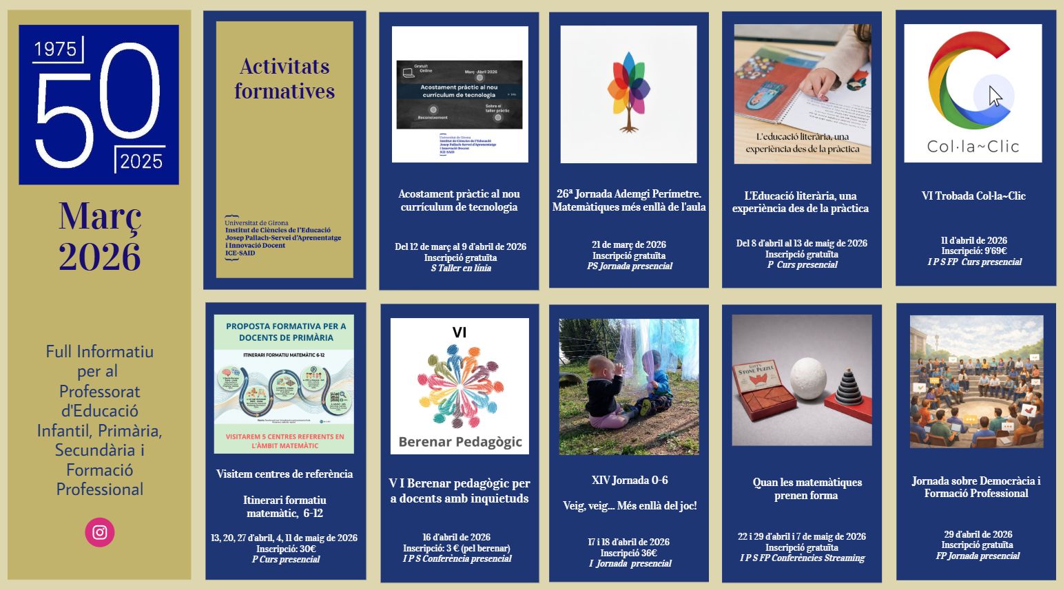 Us presentem les activitats formatives de l’UdG per aquest mes de març. Trobareu tota la informació en el següent enllaç.