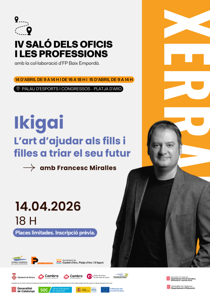 T’agradaria acompanyar el teu fill/a a decidir el seu futur professional? 👨👩👧👦✨ Els dies 14 i 15 d’abril arriba el 4t Saló dels Oficis i les Professions del Baix Empordà, on hi trobareu orientació per a famílies, estands, xerrades i demostracions en directe🎓🛠️.A més, hi haurà una xerrada per a famílies a càrrec de Francesc […]
