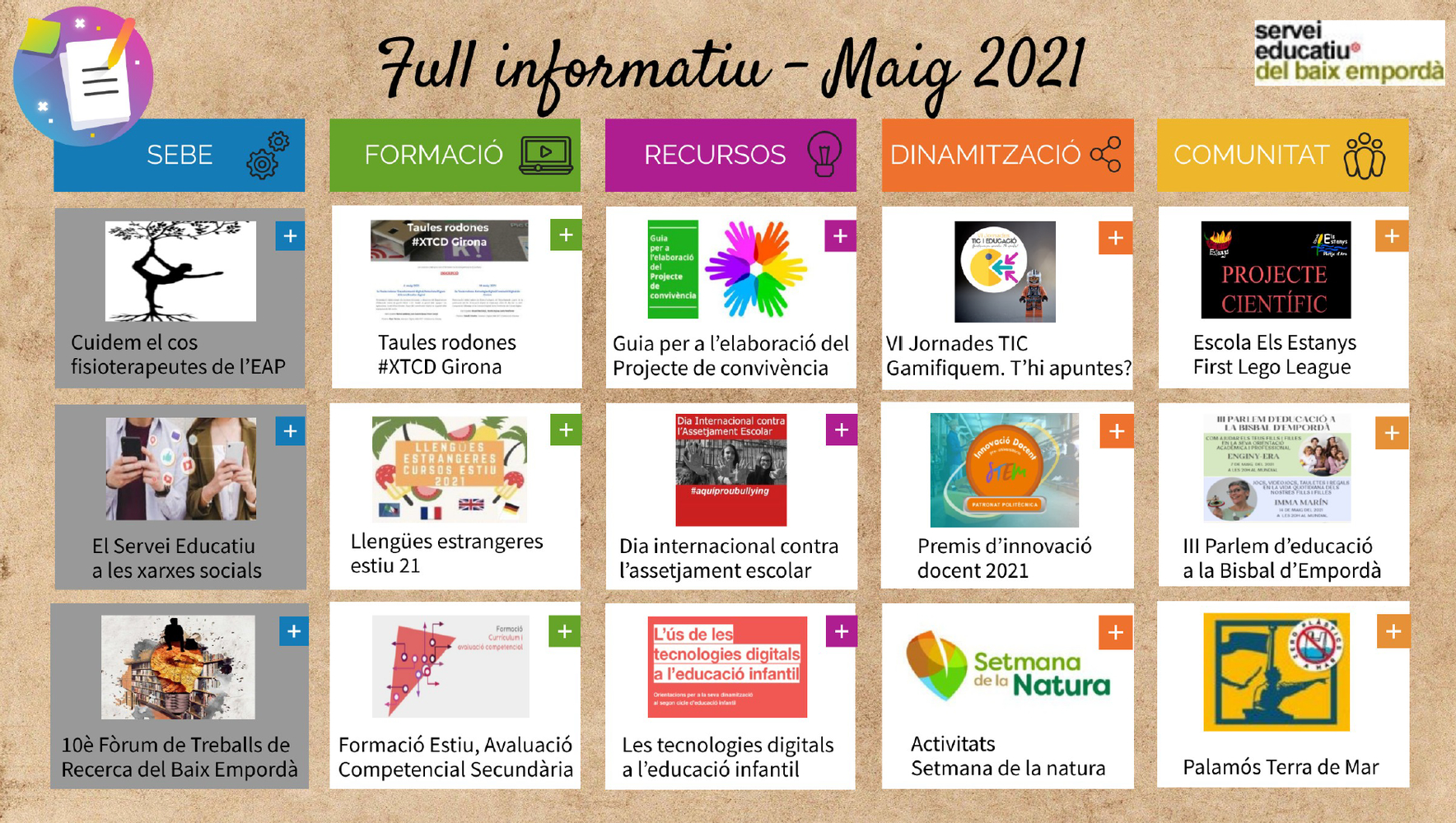 De cares el curs vinent, ja s’ha fet la detecció de les necessitats formatives i l’aprovació de les activitats del futur Pla de Formació de Zona, PFZ. S’han creat Seminaris nous i també una nova modalitat pels centres de la nostra comarca: els itineraris formatius. Us n’informem en l’article “Novetats PFZ 21-22“.