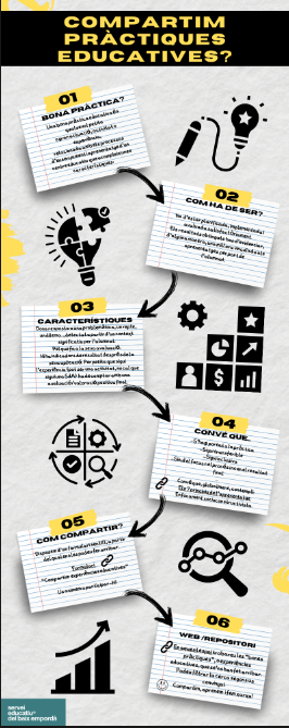 Us adjuntem una infografia de què és una bona pràctica, com ha de ser i el pas a pas per compartir-la.