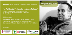 El Col·legi Oficial de Doctors i Llicenciats en Filosofia i Lletres i Ciències de Catalunya, durà a terme la conferència “La Política és Pedagogia, en Josep Pallach”, el dijous 14 de gener, a les 18:30, a través de la Plataforma Teams.