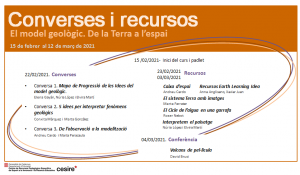 El proper 15 de febrer comença el cicle El model geològic. De la Terra a l’espai, organitzat pel CESIRE i que finalitza el 12 de març. Està destinat a mestres i professors de primària i secundària i es farà combinant l’entorn Moodle i la conferència en línia.