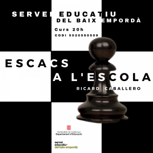 Des del Pla de Formació de Zona del Baix Empordà us oferim el curs obert Escacs a l’escola, destinada a docents que s’inicien en el joc dels escacs, o bé que volen aplicar-lo en un nivell inicial. Amb aquesta formació es vol facilitar l’aplicació de l’activitat del joc d’escacs a l’alumnat de primària i secundària. Els continguts bàsics de la formació són l’escaquer i el moviment de cadascuna de les peces, les normes bàsiques i estratègies, diferents activitats d’aplicació a l’aula i continguts de les àrees que es poden treballar amb aquest joc.