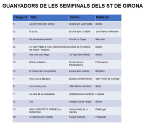 Categoria G1, l’Escola Prats de la Carrera de Palafrugell amb el títol “Una Caputxeta Vermella Moderna”.