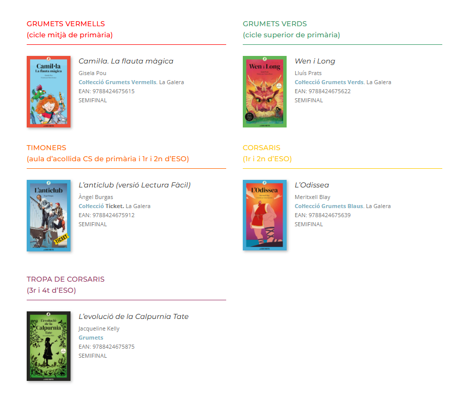 Ja estan disponibles els Llibres del XXII Certamen, curs 2025-2026, per a la fase SEMIFINAL. Tots són en l’edició escolar, per tant us preguem que us fixeu en l’AEN i la col·lecció. Per a la fase FINAL TERRITORIAL, el llibre, és de lliure elecció: el professorat tria el llibre que considera més adient.