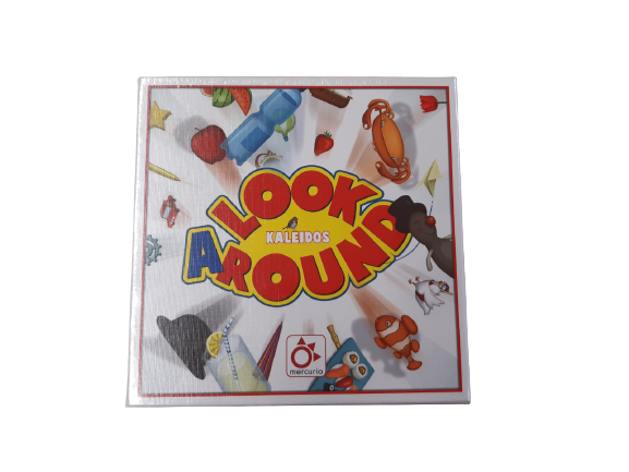 Joc de llengua estrangera. “Look Around” és un joc de cartes, on per un costat hi ha objectes i a l’altre costat hi ha una lletra. Gira la carta de la lletra per tal que es vegin els objectes i , tots alhora, busqueu un objecte que contingui la lletra que està a la vista. El més ràpid aconseguirà una carta. “Look Around” és el germà petit de Kaleidos. Es pot jugar en diferents llengües (CAT, CAST, AN,….).  Nivell: Primària.