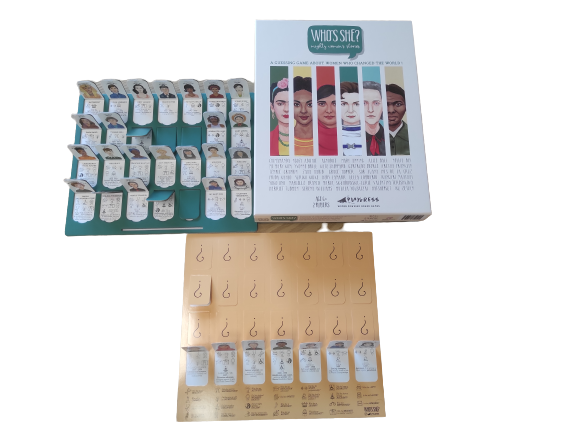 Joc semblant al Qui és qui? però en anglès i castellà i sobre dones. També hi ha fotocòpies per fer una sopa de lletres i unes fitxes amb informació de dones per fer un joc de preguntes a l’aula.