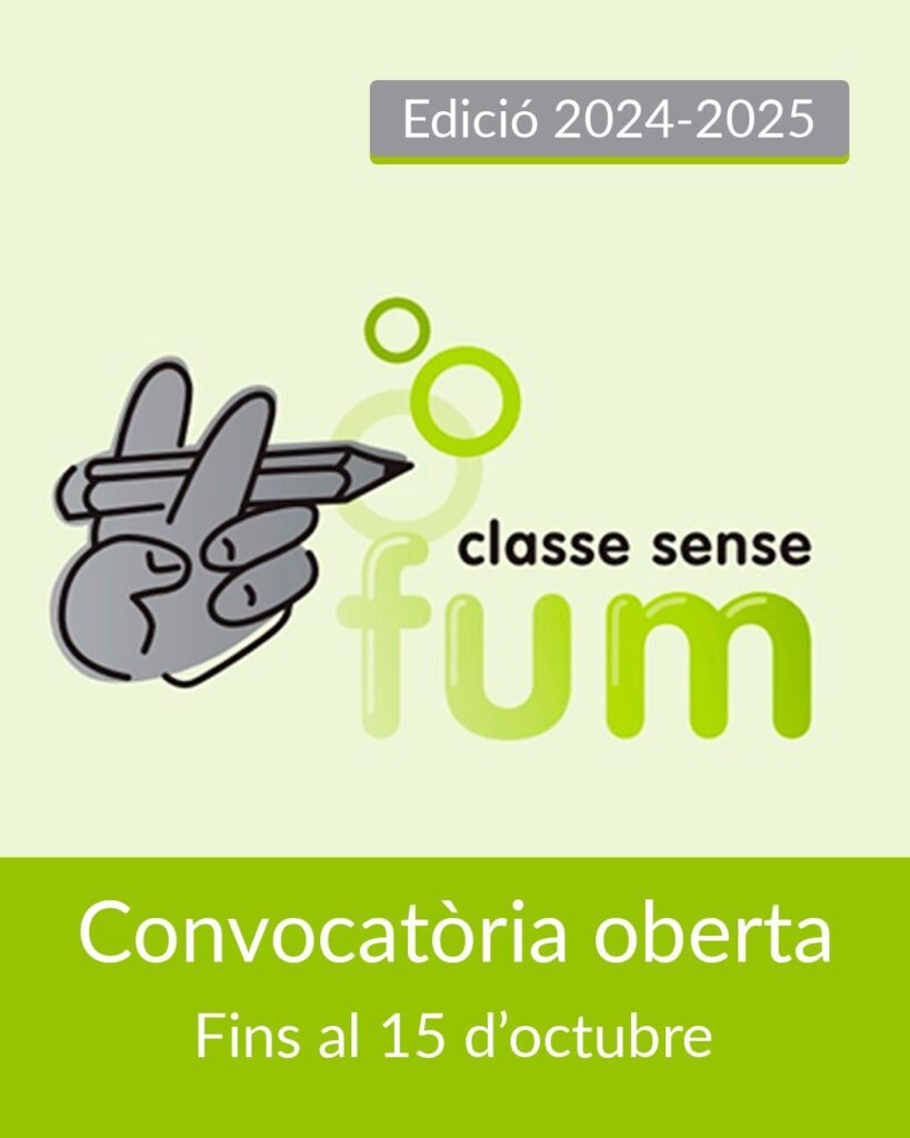 El programa Classe sense fum és un programa de prevenció del tabaquisme adreçat als alumnes de 1r i 2n curs d’Educació Secundària Obligatòria i parteix del compromís de tot un grup classe de no fumar durant un període de temps no inferior als sis mesos dins del curs escolar. S’enceta ara una nova edició en la qual poden participar els grups que s’hi comprometin, amb el suport del professorat.
