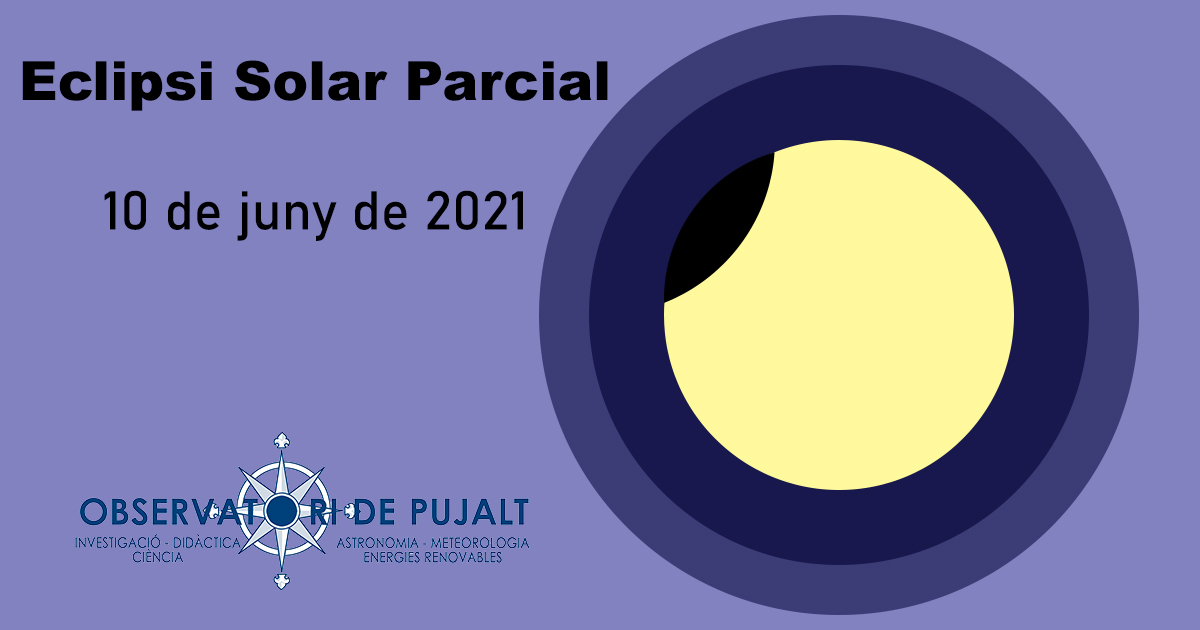 Des de la pàgina web de l’Observatori de Pujalt s’emetrà en directe l’eclipsi parcial de Sol d’aquest dijous 10 de juny i que podreu seguir des de qualsevol dispositiu. L’inici de l’eclipsi comença a les 11.16h, el màxim serà a les 11.55h i acabarà a les 12.36h.