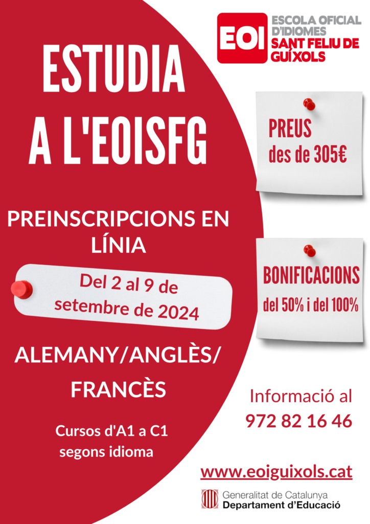 Preinscripció i matrícula curs 24-25 EOI Sant Feliu de Guíxols
