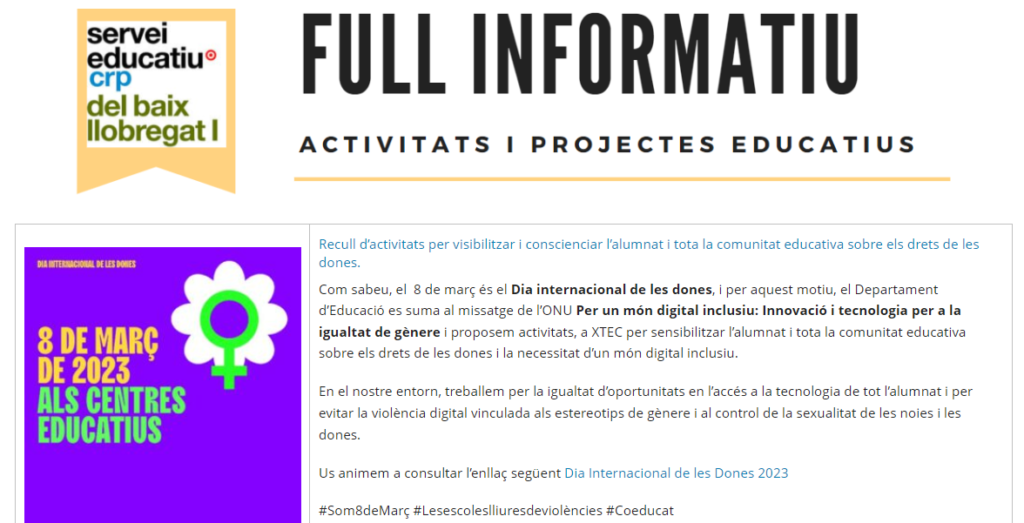 El Centre de Recursos Pedagògics dona suport a l’activitat pedagògica dels centres i a la tasca docent del professorat.