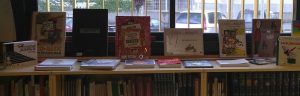 | Titelles i recull de llibres de diferents versions sobre el clàssic conte de la caputxeta vermella. |