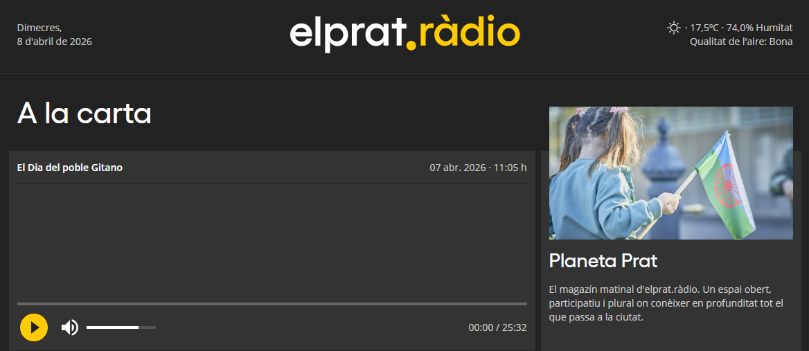 Per últim, us recomanem escoltar l’entrevista de Prat Ràdio a Jessica Moreno, orientadora educativa de la Fundación Secretariado Gitano i membre de l’equip LIC del Servei Educatiu del Prat de Llobregat. La conversa ofereix una mirada professional i compromesa sobre l’educació i la inclusió de l’alumnat gitano.